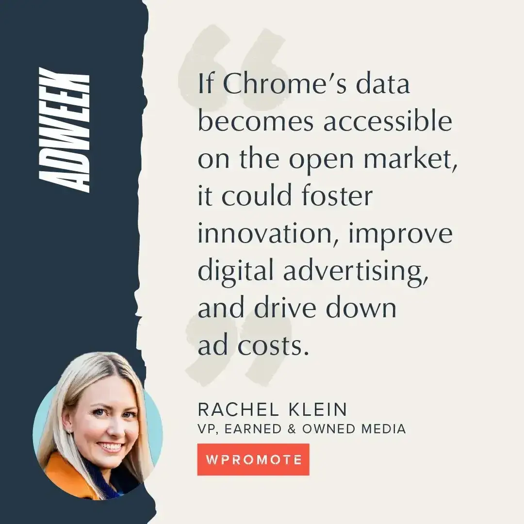 @Wpromote: With the DOJ pushing for #Google to sell #Chrome, the ad industry is bracing for change. Wpromote's VP of Earned & Owned Rachel Bucey Klein spoke to Adweek’s Lucinda Southern about how this move could spark competition, lower costs, and reshape digital advertising as we know it.